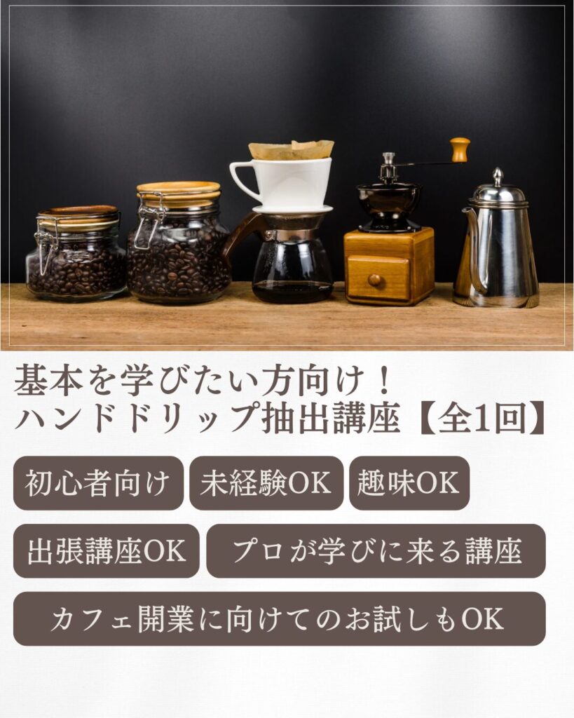 ハンドドリップコーヒーの基本に重点を置き、コーヒーの美味しさを学べる初心者様向けの内容です。